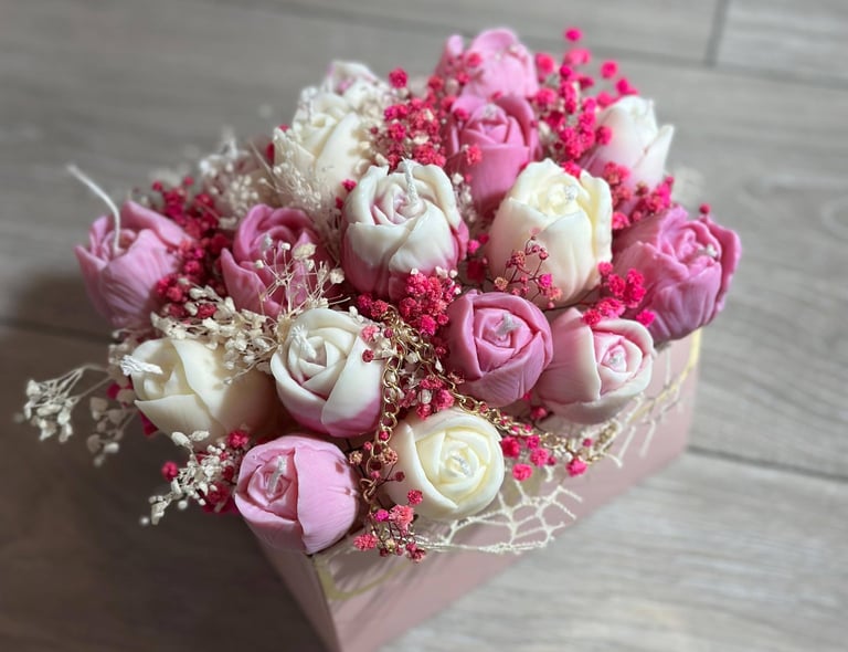 Buchet elegant cu lalele în nuanțe de roz și alb.Perfect pentru cadou sau decor romantic.